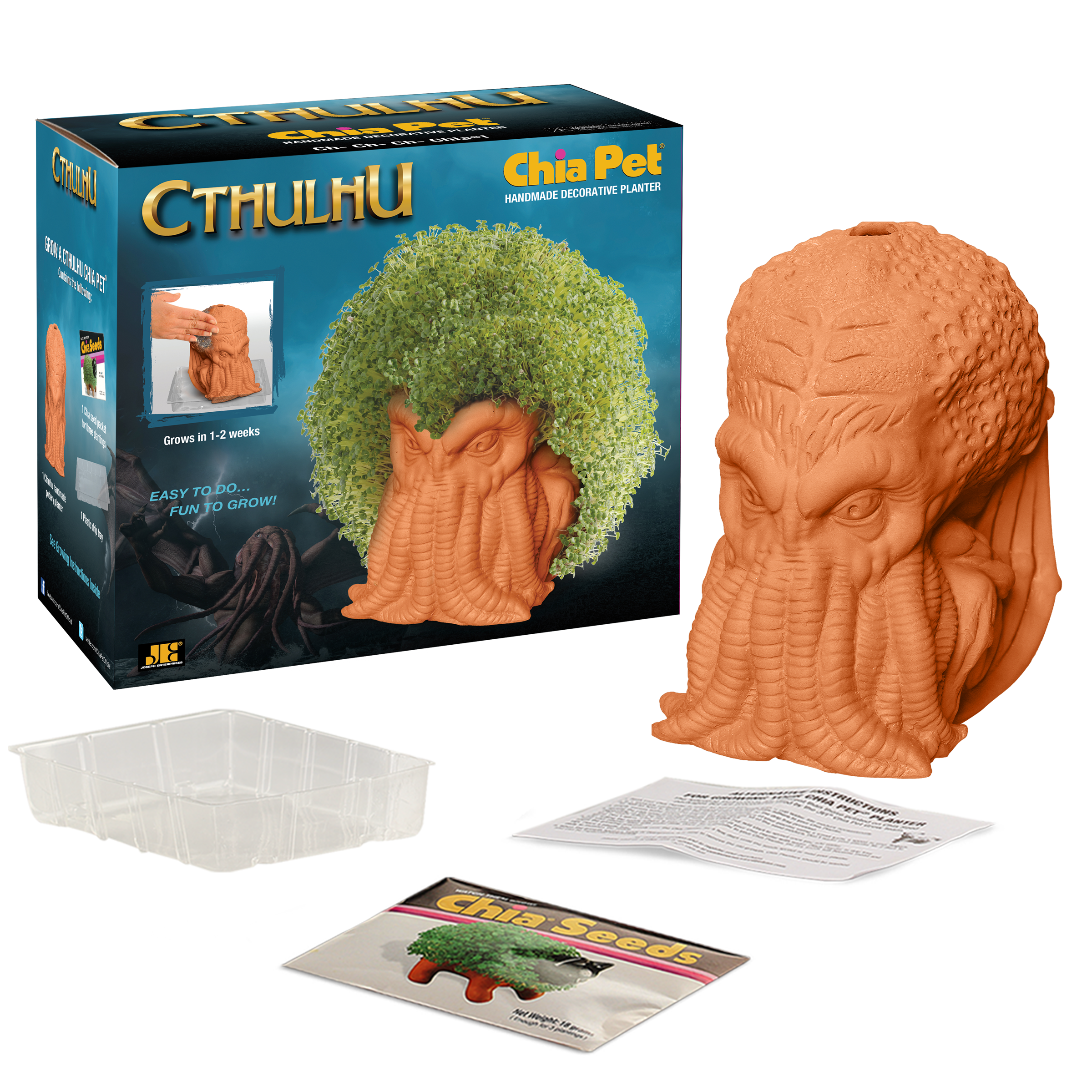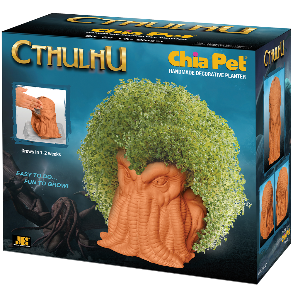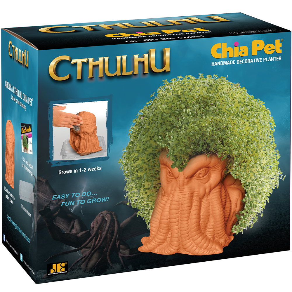 Add a touch of Lovecraftian horror to your home with the Cthulhu Chia Pet! From the dark and twisted tales of H.P. Lovecraft comes everyone’s favorite monstrous, cosmic being from beyond the stars… in Chia form! Cthulhu’s iconic tentacled head is now a unique, eldritch planter ready to grow leafy green hair in just 1-2 weeks. Chia Pets make for a fun and interactive activity as you plant your chia seeds and watch as they sprout within days. You’ll love watching Cthulhu develop into a hilarious, horrifying creation from beyond the veil of reality. It’s the perfect gift for any sci-fi or horror fan!